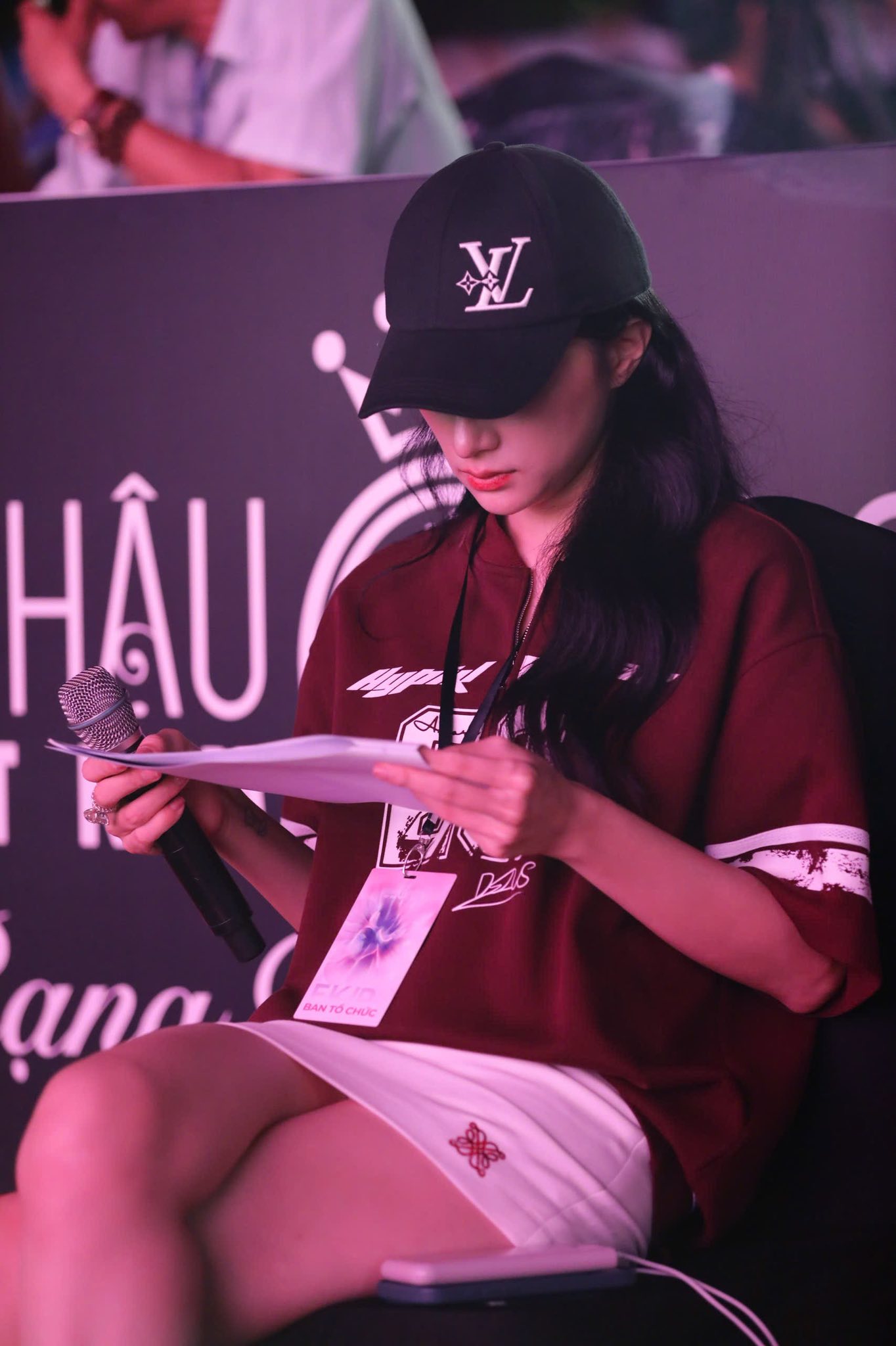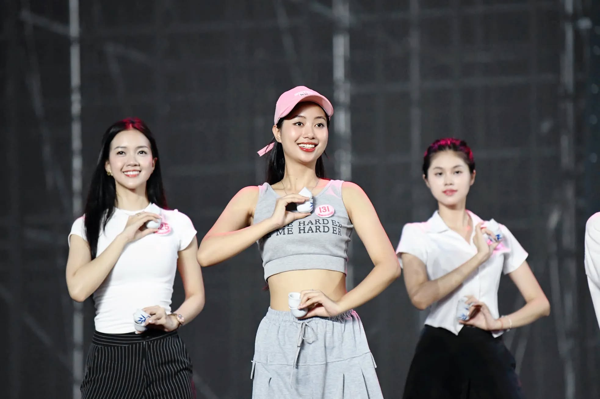 Trong buổi tổng duyệt trước đó, nhà sản xuất Hương Giang xuất hiện với trang phục đơn giản, chăm chú theo dõi từng tiết mục, đọc kịch bản kỹ lưỡng. Song song đó, các thí sinh cũng đang tập luyện ráo riết cho đêm chung kết. Những buổi rehearsal cuối cùng được Ban tổ chức duy trì với cường độ cao để đảm bảo từng tiết mục đồng đều, không có sai sót. Trong hậu trường, các người đẹp luôn nở nụ cười rạng rỡ, tràn đầy năng lượng và phong thái tự tin.