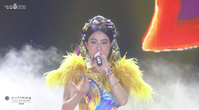 Á hậu Kiều Loan đã làm nóng không khí tại đêm Chung kết Hoa hậu Việt Nam 2020 với tiết mục mở màn liên khúc Sứ Mệnh - Wanna Be A Star