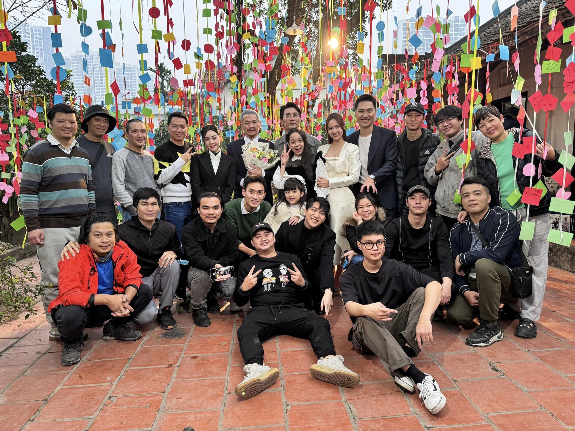 Ở cảnh quay trước đó, khi NSND Trung Anh hết vai, ekip cũng hé lộ bối cảnh lãng mạn ở ngôi nhà cũ của bố mẹ Dương. Lúc này Dương cũng diện trang phục điệu đà hơn thường ngày, sân nhà treo đầy những lới nhắn yêu thương gợi nhắc lại những màn bày tỏ tình cảm của Lâm dành cho Dương vào 8 năm trước, chính vì vậy khán giả dự đoán đây là bối cảnh Lâm cầu hôn Dương.