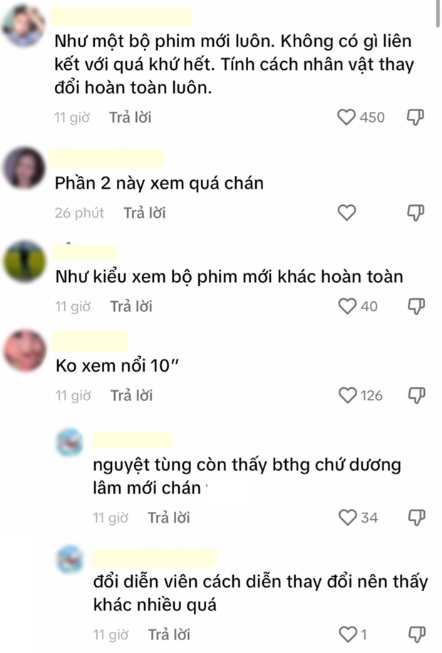 Dù vậy bên cạnh một số bình luận tiêu cực vẫn có những khán giả cho rằng sự thay đổi tính cách nhân vật Dương là hoàn toàn hợp lý bởi 8 năm qua, đã có rất nhiều biến cố xảy ra. Cô bị lừa suýt phải đi tù, chia tay tình đầu, bố mẹ qua đời cùng lúc và có lẽ còn nhiều biến cố khác đã đến với Dương mà ở tập 1 chỉ được đề cập qua một câu nói: "Cuộc đời anh cứ gặp nhiều kẻ xấu vào thì sẽ quen ngay thôi".