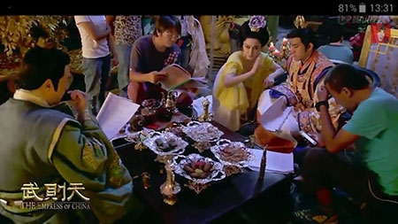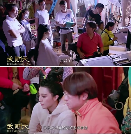 Nhân viên tạo hình của bộ phim nhấn mạnh quá trình vất vả cho tạo hình Võ hậu của Phạm Băng Băng: “Ngồi một chỗ cho chúng tôi trang điểm 4 giờ đồng hồ thực sự là một công việc không dễ dàng gì. Trang phục mỗi ngày của cô ấy đều rất nặng". |