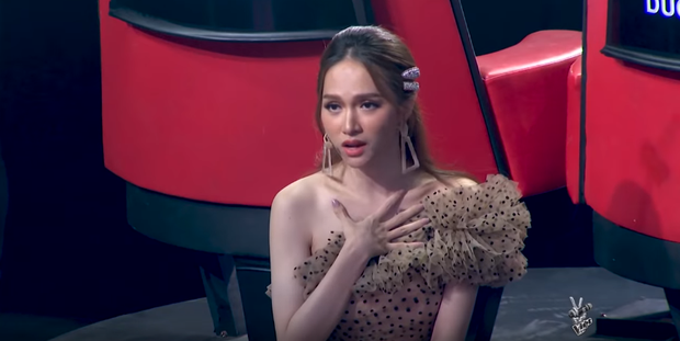 Hay lúc Hương Giang so sánh thí sinh nhí... điệu giống Phạm Quỳnh Anh, dù biểu cảm có phần hài hước và tự nhận mình là "Cô Bảy Sài Gòn" nhưng cô nàng cũng nhanh chóng tập trung vào chuyên môn để đưa ra nhận xét cho thí sinh. Hương Giang còn dùng cả vương miện để chiêu mộ học trò nữa cơ mà!