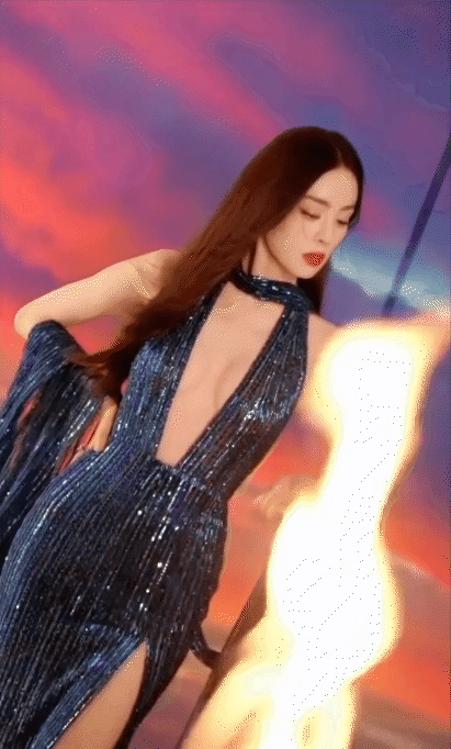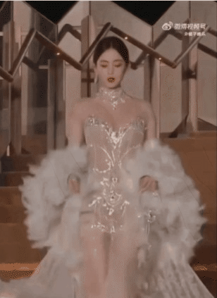 Cũng may sau màn xuất hiện sến súa trên thảm đỏ, Cổ Lực Na Trát quay ngoắt 180% khiến dân tình phải điêu đứng. Bước thêm sân khấu nhận giải, mỹ nhân Tân Cương phô diễn làn da trắng không tỳ vết cùng vóc dáng mình hạc xương mai trong một thiết kế xẻ cao, khoét sâu táo bạo nhất từ trước đến giờ. Bộ cánh khoét trên xẻ dưới của Na Trát đủ khiến fan thót tim mỗi khi cô bước đi trên sân khấu.
