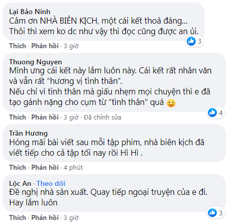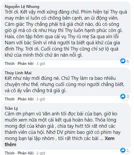 Mới đây, một khán giả đã gây sốt khi viết lại một cái kết hoàn toàn khác cho nhân vật Thy. Ngay sau khi bài viết được đăng tải ít giờ, hàng trăm dân mạng đã bày tỏ sự thích thú và cho rằng đây mới là cái kết vừa nhân văn vừa thỏa đáng, làm hài lòng người xem.
