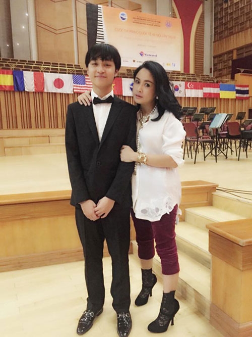 | Thanh Lam chụp cùng con trai sau đêm thi. |