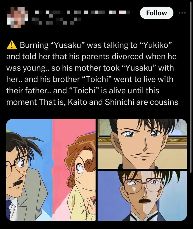 Thông tin này không chỉ chứng minh Yusaku và Kaitou Kid đời đầu là anh em ruột, mà dẫn đến việc Conan/ Shinichi và Kaito Kid hiện tại chính là anh em họ hàng, mang chung dòng máu ruột thịt.
