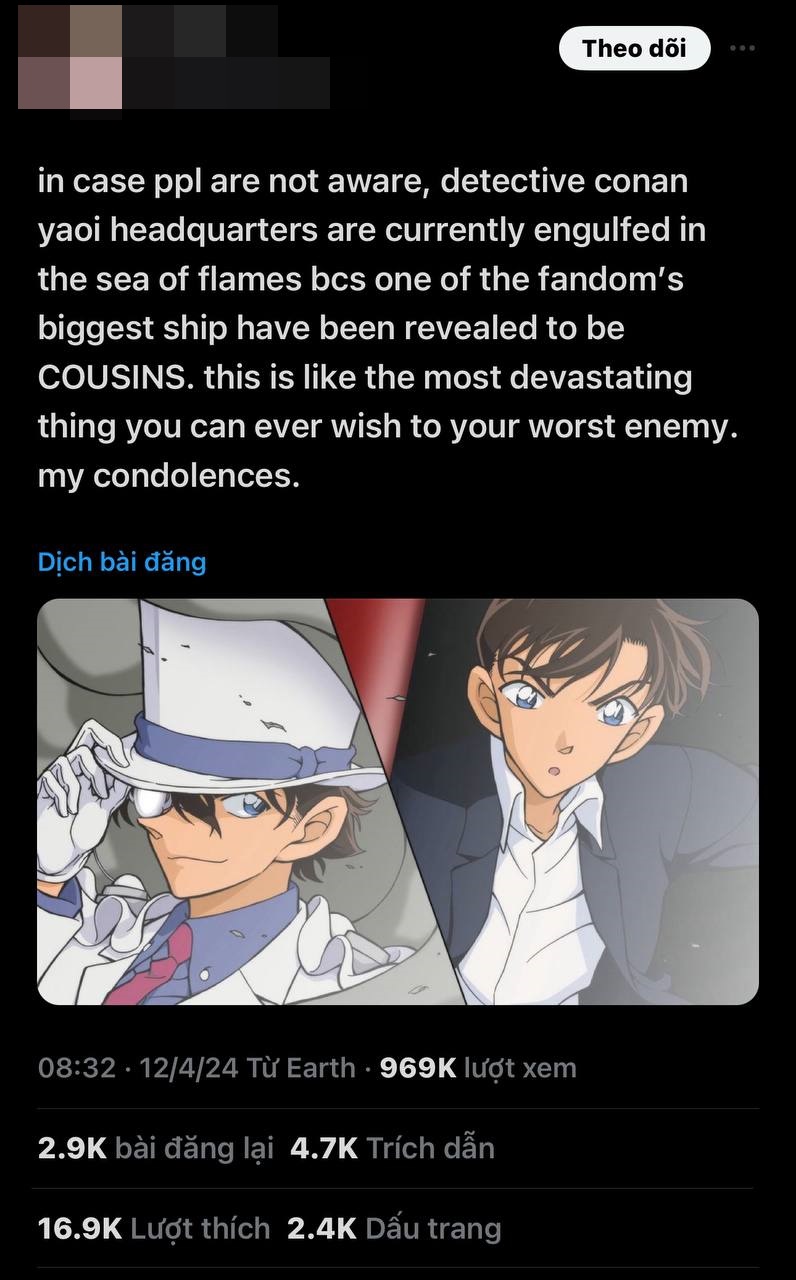 Màn công bố bất ngờ này trong Thám Tử Lừng Danh Conan: Ngôi Sao Năm Cánh Triệu Đô khiến netizen bùng nổ và sốc nặng. Đã có rất nhiều người chỉ trích tác giải Gosho Aoyama trên MXH X (Twitter) vì tình tiết bất ngờ này. Một số còn khóc than khi "thuyền" Shinichi - Kaito nổi tiếng bậc nhất phim từ trước đến nay giờ đã "chìm nghỉm".