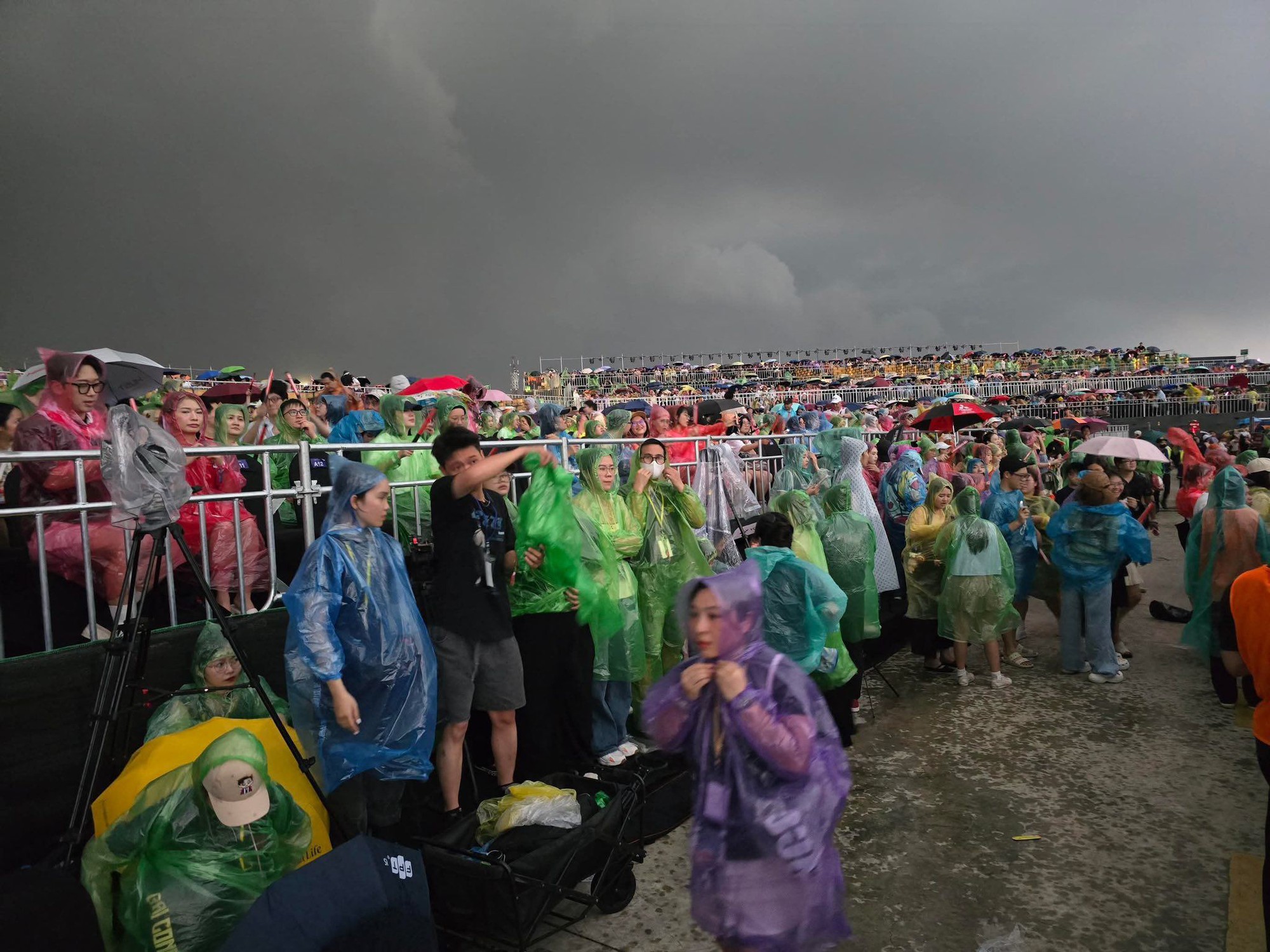 Không khí trước show vẫn cuồng nhiệt hơn bao giờ hết. Các Gai Con dường như không ngại trời mưa, "quẩy" luôn phần nhạc dạo mà chương trình chuẩn bị. Hệ thống đèn LED sân khấu tạm off để tránh xảy ra sự cố.