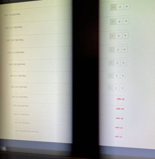 Trong khi hàng trăm ngàn người vẫn đang xếp hàng mua vé thì 2 hạng vé CAT4 (giá: 1tr8) và hạng vé CAT5 (giá 1tr2), 1 nửa hạng CAT3 (giá 3tr8) và hạng cao nhất VIP L (giá 9tr8) cho concert BLACKPINK tại Việt Nam đã nhanh chóng SOLD OUT chưa đầy 1 giờ mở bán!