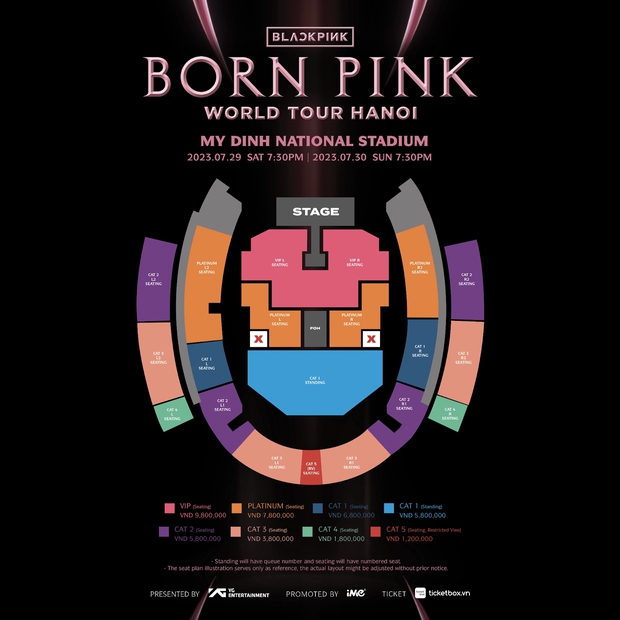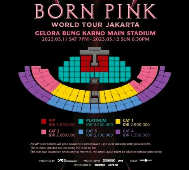 Dù BTC hiện chưa công bố sơ đồ chỗ ngồi nhưng đơn vị tổ chức concert BORN PINK tại Việt Nam IME cũng từng là đơn vị tổ chức concert BORN PINK tại Indonesia. Vì vậy, nhiều khả năng, cách sắp xếp số ghế trên sân vận động Mỹ Đình sẽ được thực hiện tương tự giống như concert tại Indonesia.