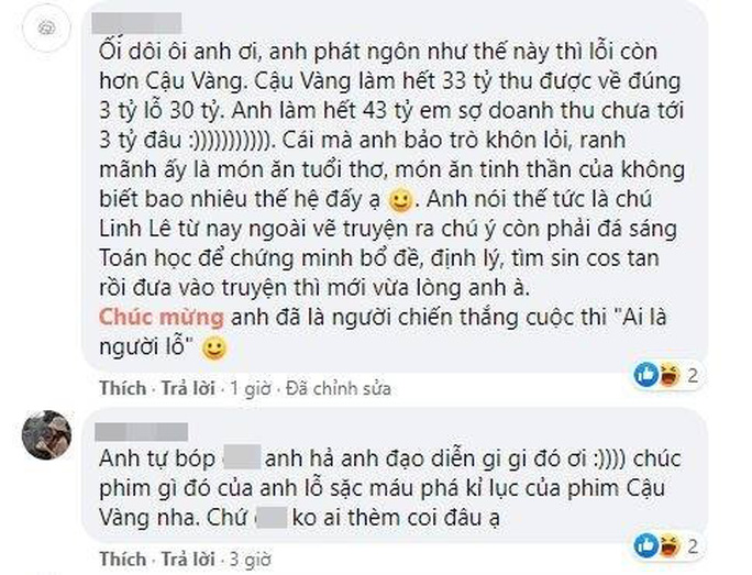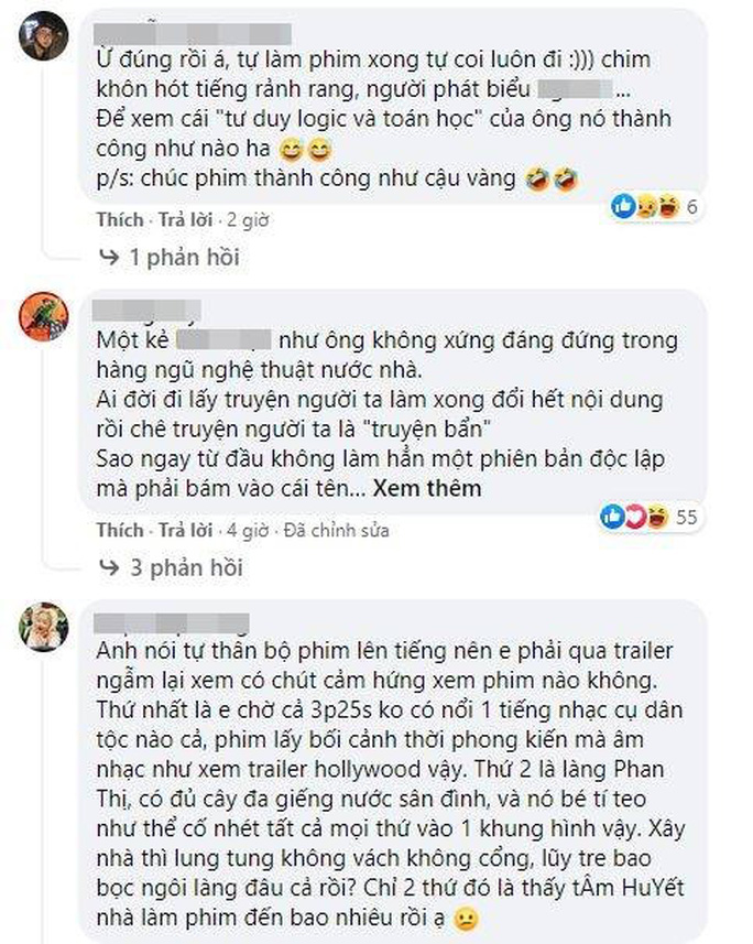 Với mức đầu tư hơn 43 tỉ đồng, Ngô Thanh Vân đang cố cứu vãn bộ phim khỏi làn sóng tẩy chay của cư dân mạng thì phát ngôn của đạo diễn phim lại như đổ thêm dầu vào lửa. Không ít ý kiến cho rằng đạo diễn Nhật Linh đang đi vào vết xe đổ của phim Cậu Vàng, thậm chí còn nặng hơn khi làm phim từ truyện xong đổi hết nội dung và quay ngược lại chê nguyên tác.