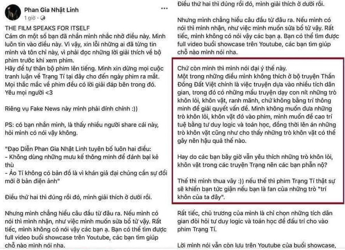 Cách đây ít giờ, đạo diễn Phan Gia Nhật Linh đã khiến cho người hâm mộ bộ truyện tranh "Thần đồng đất Việt" (nguyên tác bản quyền của phim "Trạng Tí") bức xúc, thậm chí phẫn nộ với chia sẻ: "Một trong những điều mình không thích ở bộ truyện Thần đồng đất Việt chính là việc truyện dựa vào nhiều tích dân gian, trong đó có nhiều mẩu truyện dạy con nít những trò khôn lỏi, khôn vặt, ranh mãnh, chứ không bằng trí thông minh để giải quyết vấn đề. Mình không muốn đưa những trò khôn lỏi, khôn vặt đó vào phim, mình muốn đề cao trí tuệ bằng tư duy logic và toán học, đồng thời lên án những trò khôn vặt cũng như cho thấy những trò khôn vặt có thể gây nên hậu quả như thế nào. Hay do các bạn bây giờ vẫn yêu thích những trò khôn lỏi, khôn vặt trong các truyện Trạng nên các bạn phẫn nộ? Thế thì mình thua vậy. Nếu thế thì phim Trạng Tí thật sự sẽ khiến bạn tức giận nếu bạn là fan của những trò trí khôn của ta đây".