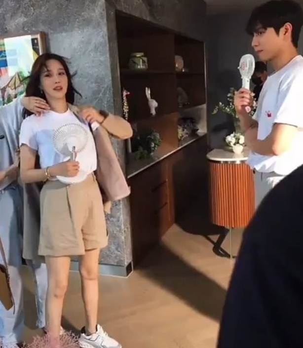 Chưa dừng lại ở đó, người hâm mộ cũng không ngừng bàn tán xôn xao trước bức ảnh của Su Ryeon (Lee Ji Ah) ở hậu trường. Khác hẳn với những hình ảnh trong phim khi mỗi lần xuất hiện nữ diễn viên đều diện những bộ cánh sang chảnh, Lee Ji Ah ở hậu trường ăn vận khá giản dị. Đặc biệt, cư dân mạng không khỏi chú ý đến đôi chân ngắn ngủn của nữ diễn viên, quá khác so với trên phim.