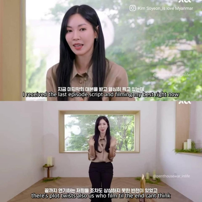 Nếu như trong tập 11, khán giả không khỏi sốc khi nhân vật ác nữ Seo Jin (Kim So Yeon) bị chùm đèn trên trần nhà đâm xuyên qua bụng và được cho là đã "bay màu", thì mới đây, nữ diễn viên lại bất ngờ tiết lộ rằng vẫn sẽ xuất hiện trong tập cuối khiến nhiều người không khỏi bất ngờ: "Tôi đã nhận được kịch bản cho tập cuối và vẫn cố gắng hết sức để quay phim. Sẽ có nhiều cú twist đầy bất ngờ mà các diễn viên chúng tôi cũng không thể ngờ tới".
