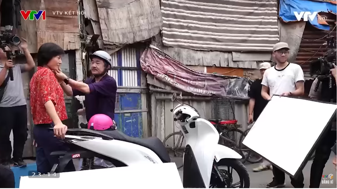 Cũng trong clip hậu trường này, diễn viên Minh Cúc chia sẻ, sự ồn ào, đông đúc ở chợ đầu mối Long Biên là một trong những khó khăn của đoàn phim.