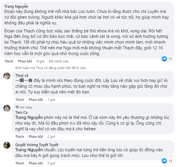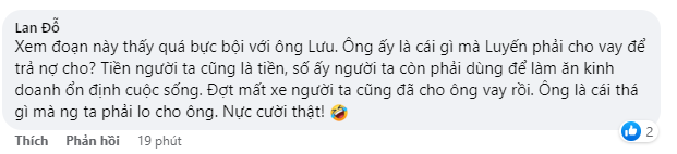 Thái độ khó chịu, hằn học, ghen tuông của Lưu khiến khán giả tranh cãi rôm rả trên MXH. Nhiều người cho rằng Lưu không có quyền trách Luyến chuyện cô không cho anh vay tiền trả nợ. Bởi Lưu nợ một số tiền quá lớn, ngoài sức giúp đỡ của mọi người trong xóm trọ nghèo. Trước đó, mọi người ở khu chợ, bao gồm cả mẹ con Luyến đã vài lần quyên góp giúp bố con Lưu nhưng cũng không thấm tháp gì so với chỗ nợ lãi mẹ đẻ lãi con.