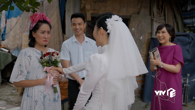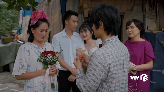 Đến màn tung hoa cưới, thay vì tung thì Luyến đến trao tận tay cho Bình khiến cô nàng bật khóc. Điền cũng tặng Bình chiếc nhẫn như lời cầu hôn và nói 'Hai mẹ con chờ anh nhé' khiến Bình xúc động.