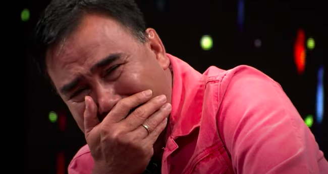 Sau đó, MC Quyền Linh ôm mặt khóc nức nở. Cố gắng bình tĩn, anh nói tiếp: "Cứ thế, nó tạo nên 1 con người vô cùng sần sùi, gai góc, chẳng còn gì để khổ hơn nữa".
