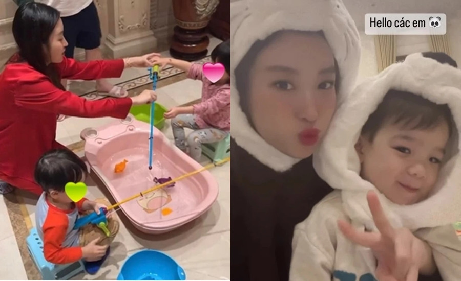 Ngoài chăm sốc tổ ấm riêng, nàng hậu cũng rất quan tâm gia đình chồng, đặc biệt là 2 nhóc tỳ con của anh trai chồng. Cô yêu thương, vui đùa cùng các cháu khi ở nhà hay ở nơi công cộng.