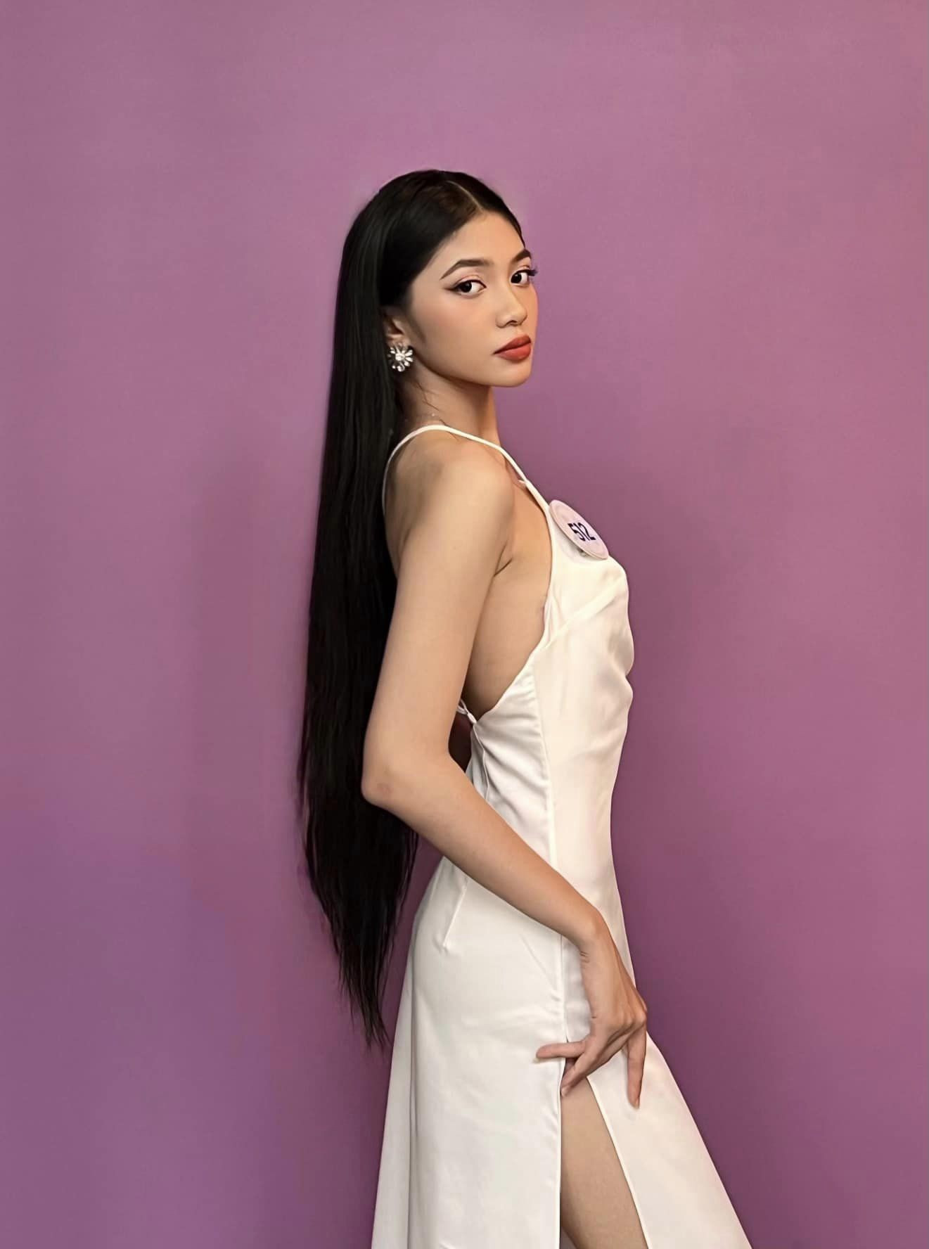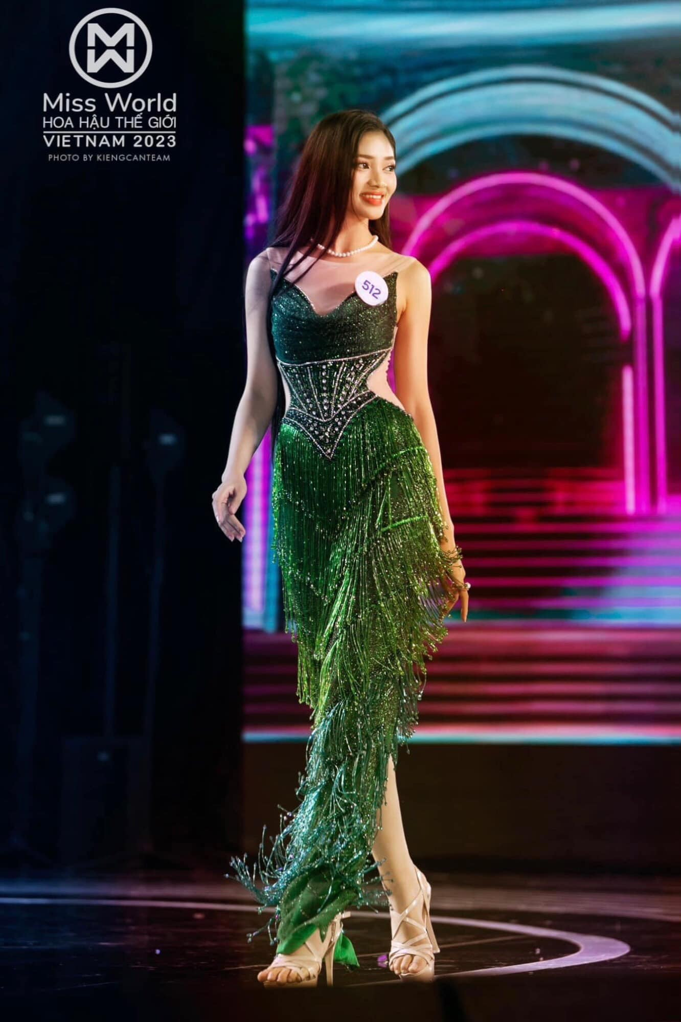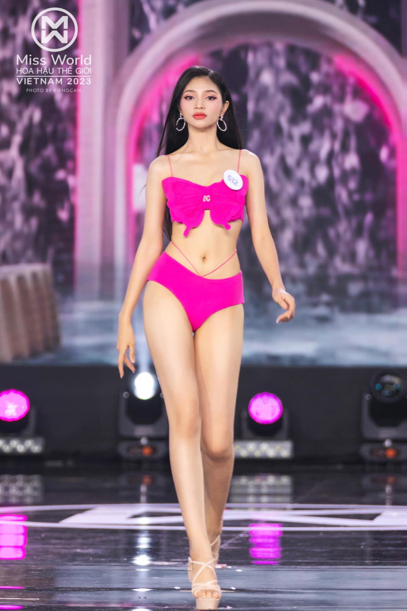 Là một trong những thí sinh nhỏ tuổi nhất Miss World Vietnam 2023, Huỳnh Minh Kiên (SBD 512) gây ấn tượng nhờ vẻ ngoài cá tính, phong thái tự tin. Cô sinh năm 2004, đến từ Ninh Thuận, cao 1,71m, số đo 3 vòng: 80-61-90cm, hiện là sinh viên ĐH Nông Lâm TP.HCM.