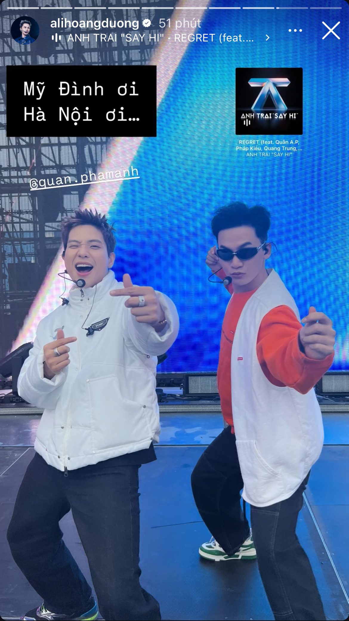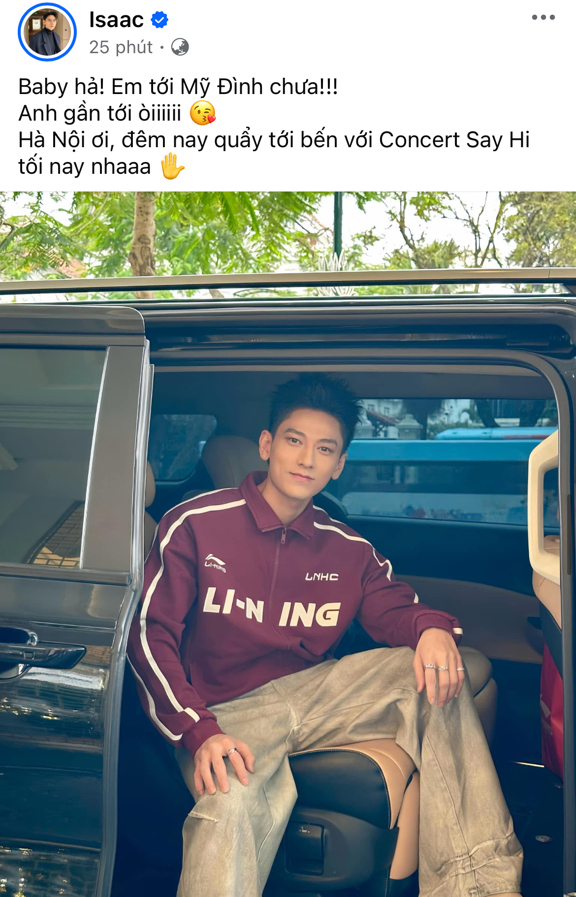 Cũng chung tâm trạng trên, Gin Tuấn Kiệt, Isaac khoe được người hâm mộ chào đón, mong chờ tùng phút để được "quẩy" cùng nhau. Ali Hoàng Dương thì cập nhật tình hình fan xếp hàng, đổ đồn về sân khấu ở sân vận động Quốc gia Mỹ Đình.