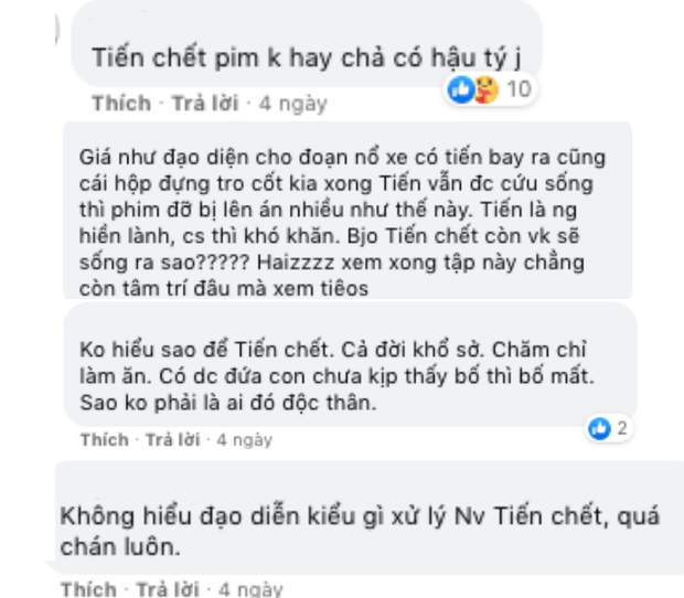 Sau khi Tiến qua đời , tôi thực sự thấy bất ngờ vì tình cảm của mọi người dành cho mình và Tiến . Tôi không nghĩ mọi người lại bày tỏ cảm xúc nhiều tới vậy. Tôi hạnh phúc thật sự vì suy cho cùng đối tượng hướng tới là khán giả. Mọi người đồng cảm với nhân vật có nghĩa là mình đã phần nào đó thành công.