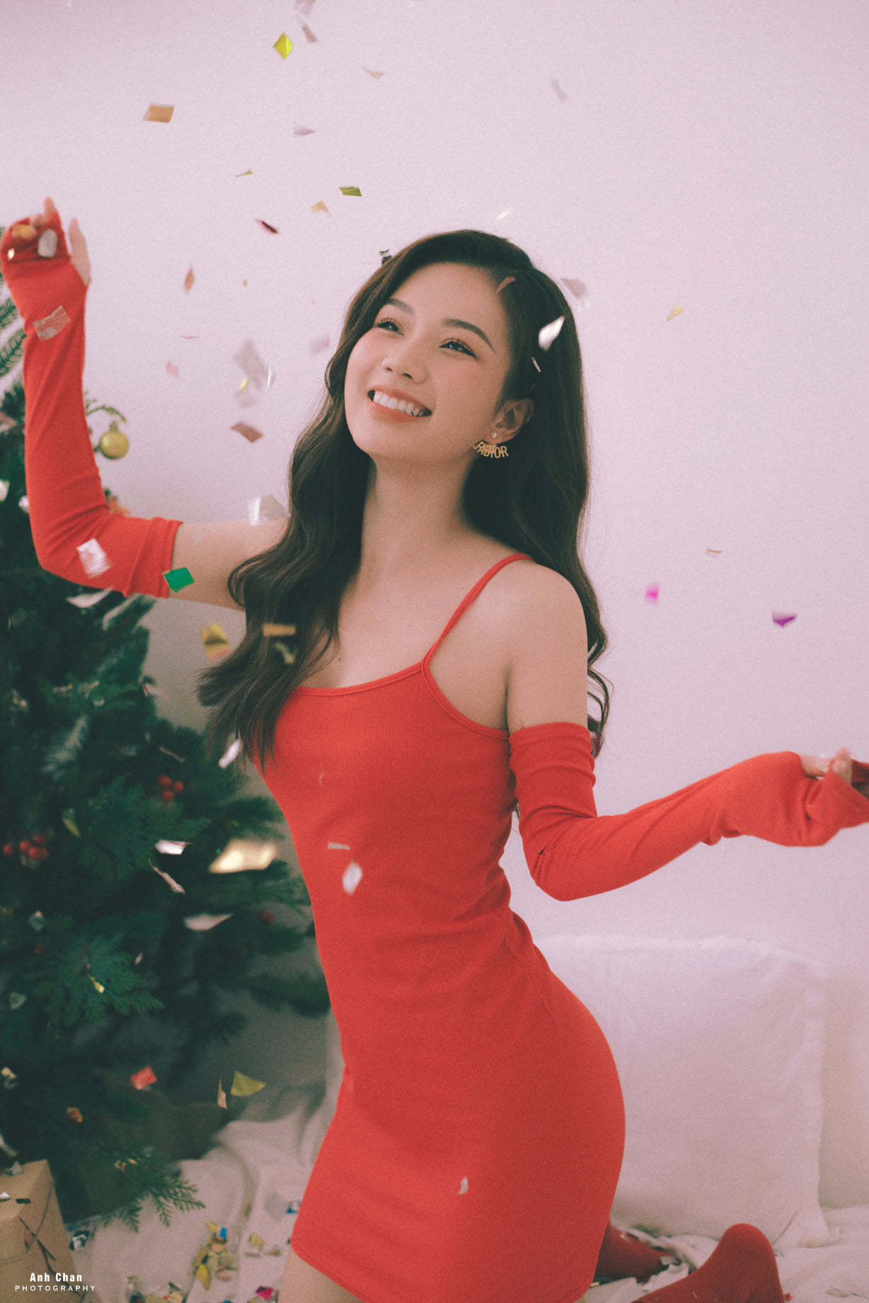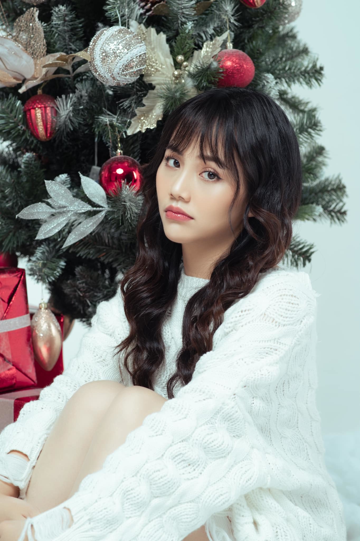 Không hẹn mà gặp, cả ba cùng tung loạt ảnh với chủ đề Giáng sinh. Trong khi bà mẹ một con Minh Thu chọn đầm trắng ngắn thì Ngô Lệ Quyên, Ngọc Anh cùng chọn đầm đỏ sexy hút mắt, khác hẳn hình ảnh của các nhân vật họ đảm nhiệm trên phim.