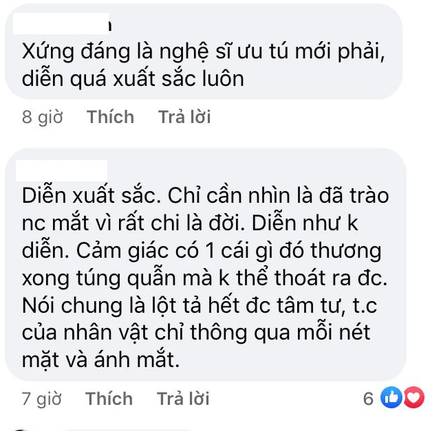 Nét diễn rất đời, chân thực qua từng biểu cảm trên gương mặt của Võ Hoài Nam đã lột tả được vẻ khắc khổ của người cha nghèo nhưng hết lòng vì con gái, làm bất cứ việc gì kể cả quay lại đường cũ chỉ để con gái được sống những ngày bình yên. Khoảnh khoắc ông Sinh lén nhìn con gái từ xa, muốn gọi tiếng con, muốn ôm con vào lòng nhưng lại không thể khiến người xem xót xa, nghẹn ngào rơi nước mắt.