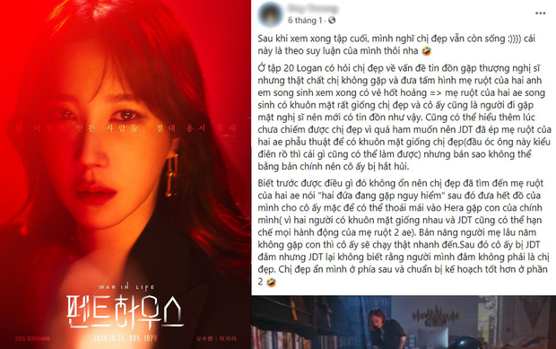 Cụ thể, fan Việt đã dự đoán mẹ ruột của cặp song sinh (sau này được tiết lộ là Na Ae Kyo) chính là người thế mạng cho Shim Su Ryeon (Lee Ji Ah) ở tập 20 Penthouse. Người này còn dự đoán được rằng hai nhân vật có gương mặt giống nhau nên sớm đã đổi quần áo để thoải mái ra vào Hera. Dòng cuối cùng nhưng có vẻ là quan trọng nhất: "Chị đẹp ẩn mình ở phía sau và chuẩn bị kế hoạch tốt hơn ở phần 2".
