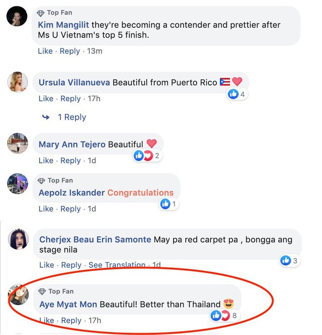 Khi so sánh với Lương Thùy Linh, một khán giả nhận xét rằng ứng cử viên từ Việt Nam trội hơn người đẹp Thái Lan.