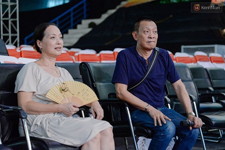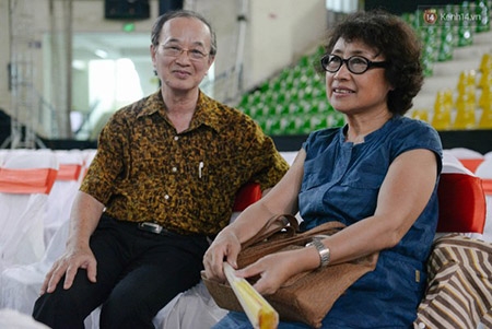 Nhà báo Lại Văn Sâm và diễn viên Lê Khanh có mặt từ rất sớm để cùng các đồng nghiệp chuẩn bị cho buổi lễ. |