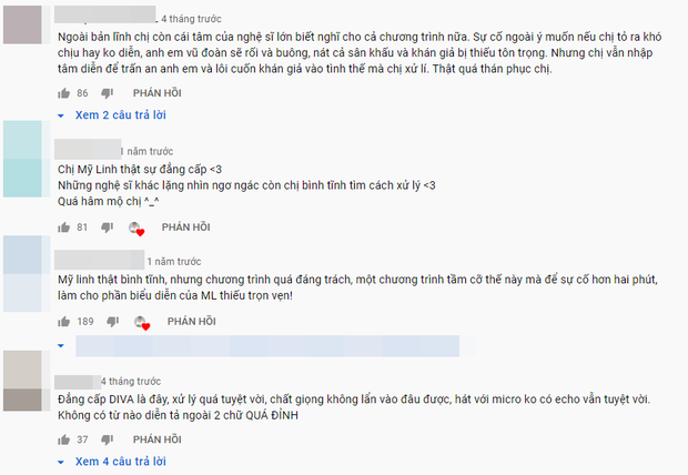Phía dưới phần bình luận, tất cả khán giả đều dành những lời khen ngợi "có cánh" cho cách xử lí bài bản và chuyên nghiệp của diva Mỹ Linh, đặc biệt là trên sóng truyền hình trực tiếp. Nhiều người "nổi da gà" khi chỉ ra dù chỉ dùng 2 chiếc micro vô cùng nghiệp dư nhưng nhờ các kĩ thuật điêu luyện, Mỹ Linh vẫn mang đến một màn trình diễn ấn tượng.