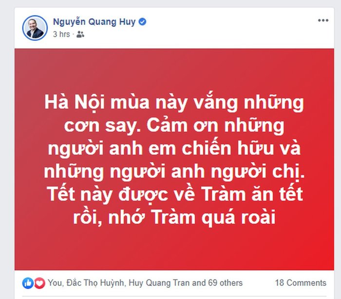 Mới đây, đạo diễn Quang Huy đã đăng tải trên trang cá nhân của mình lời cảm ơn đến bạn bè chiến hữu với giọng điệu vui vẻ lạc quan. Ở bên dưới phần bình luận, nhà báo Lê Hồng Lam, diễn viên Tiến Luật cùng nhiều người bạn của đạo diễn 30 chưa phải Tết cũng gửi lời chúc mừng. Phải chăng bộ phim đã vượt ải kiểm duyệt, nắm chắc giấy phép trong tay và sẵn sàng ra rạp vào ngày mồng Một Tết Canh Tý 2020?