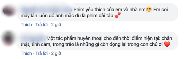 Bên dưới bình luận, nữ chính Tăng Thanh Hà cũng bồi hồi viết: '12 năm rồi, nhanh quá bác'. Diễn viên Hiếu Hiền vai anh Hiều cũng xúc động chia sẻ: 'Ký ức vui vẻ của em đó anh trai! Nhớ không sót bất cứ ngày quay nào luôn. Mến chúc anh chị em ekip thân thương luôn vui kẻ và may mắn trong cuộc sống cũng như trong công việc nhé!.