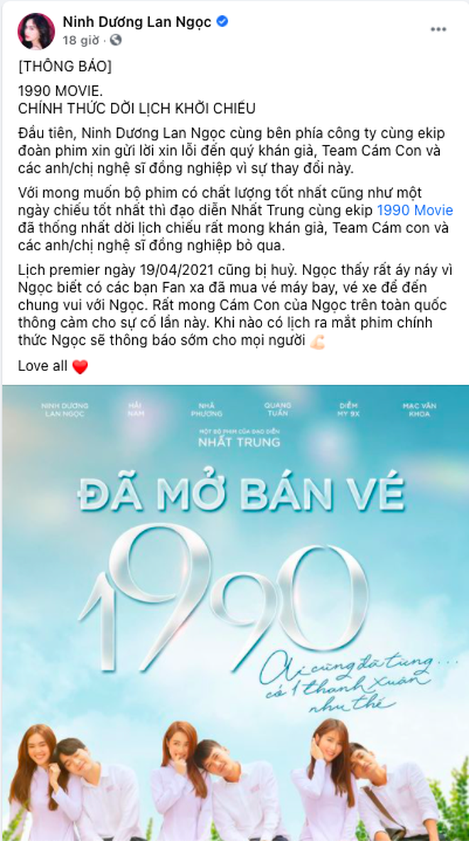Nhìn vào động thái của 3 nữ diễn viên kể trên, có thể thấy ngay sự khác biệt bất ngờ. Sau thông tin phim phải dời lịch chiếu, Lan Ngọc nhanh chóng chia sẻ lại "tâm thư" của đạo diễn Nhất Trung, gửi lời xin lỗi tới người hâm mộ vì đã mua vé máy bay, vé xe để đi xem phim. Về phần Diễm My, cô nàng cũng đăng tải thông tin phim bị hoãn chiếu, mong khán giả thông cảm.