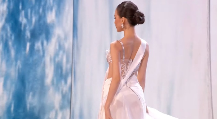 Một trong những "đặc sản" không thể thiếu tại Miss Universe chính là những thiết kế váy dạ hội xẻ tà cao, khoe khéo đôi chân dài thẳng tắp. Tuy nhiên, việc chọn lựa hướng đi này cũng khiến một số thí sinh rơi vào tình huống khó khăn và liên tục gặp phải một số sự cố như vấp váy, suýt té ngã, loạng choạng trên giày cao gót.