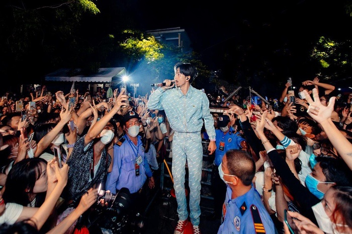 Trong đoạn clip có thể thấy, khán giả bên dưới rất nhiệt tình hòa theo ca khúc mà anh chàng biểu diễn. Điều này cũng chính là lí do khiến nam rapper không nỡ rời sân khấu, đành phải “lố giờ” của đồng nghiệp, tiếp tục đắm chìm trong thế giới âm nhạc cùng fan hâm mộ.
