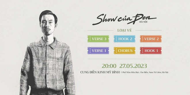 Liveshow của Đen dự kiến tổ chức ngày 27/5/2023. Show có 6 hạng vé, dao động từ 650.000 đồng đến 2,9 triệu đồng.