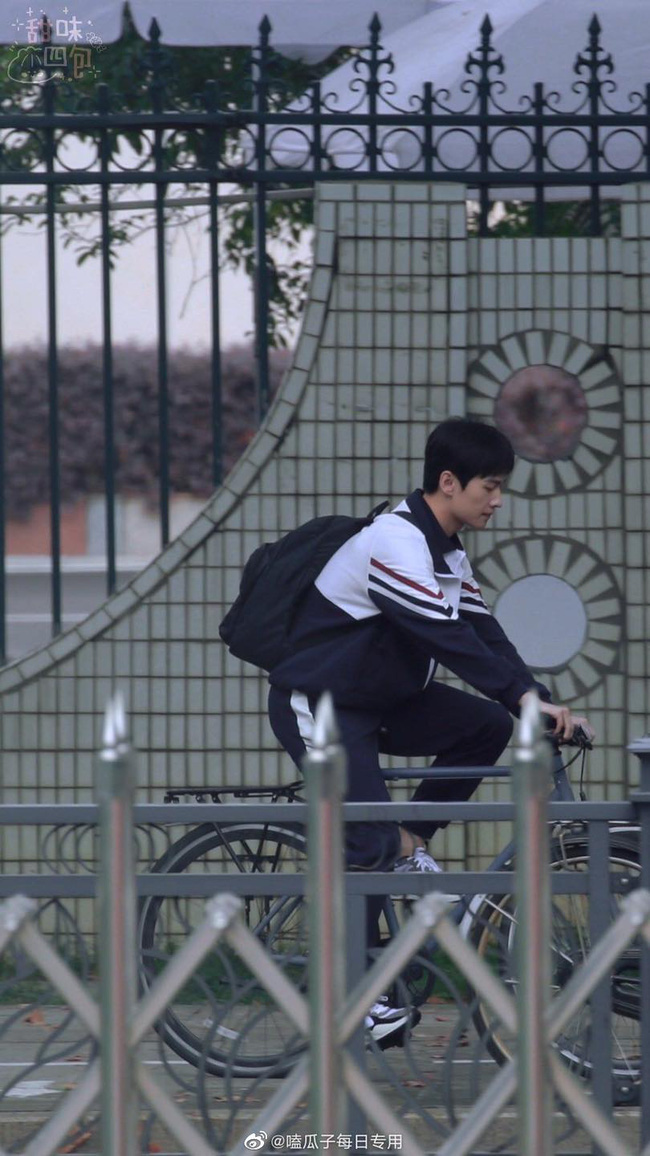 Trong khi đó, Dương Dương làm nam sinh cấp 3, còn đạp xe với dáng vẻ nam thần cực kỳ bắt mắt. Tuy ảnh chụp ở khoảng cách từ rất xa nhưng vẻ đẹp trai của Dương Dương vẫn không hề mất đi. Anh chàng đốn tim người xem với dáng người cao gầy cùng gương mặt thanh tú thon gọn.