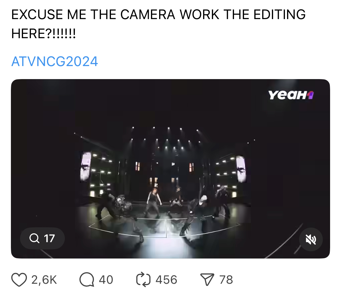 - Nhạc hay, vocal, dance, visual đỉnh, concept hay, thông điệp truyền tải rõ ràng, sân khấu + ánh sáng, quay phim đỉnh. Tớ đâu ngờ có ngày đc xem free màn trình diễn kiểu này mà người biểu diễn lại chính là các nghệ sĩ nội địa đâu, chất lượng TIỆM CẬN VỚI THẾ GIỚI thật sự. Shout out to ekip ATVNCG2024.