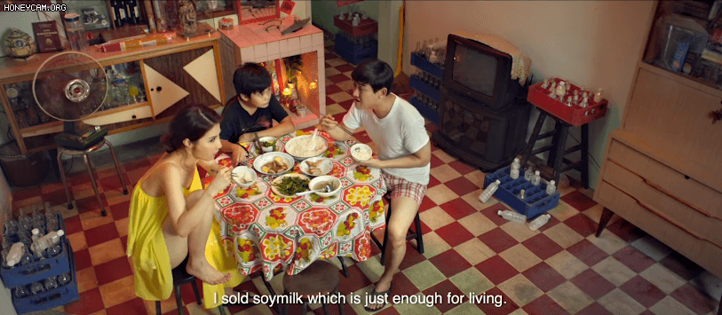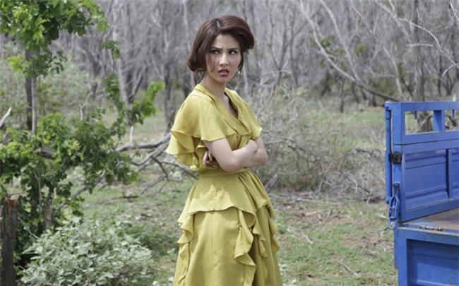 | Cảnh Diễm My ngồi ăn cơm gác chân lên ghế, lấy tay xỉa răng trong "Chạy đi rồi tính" |