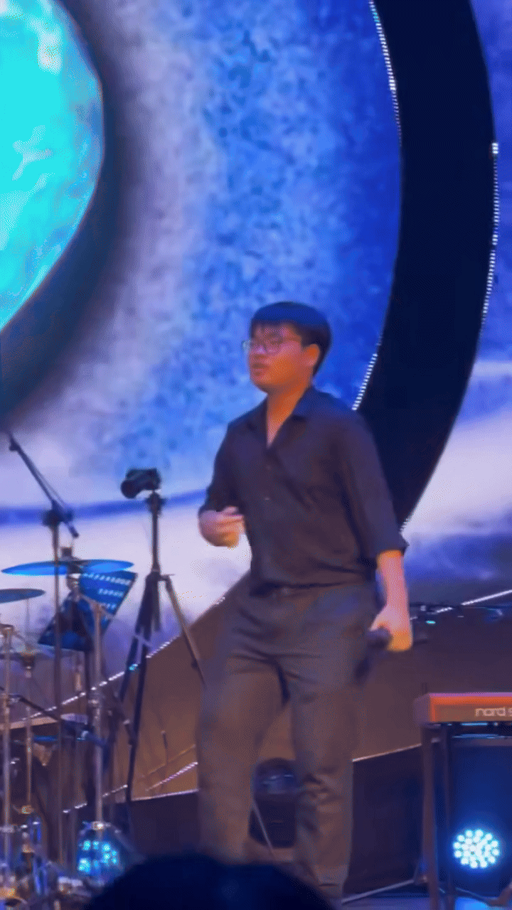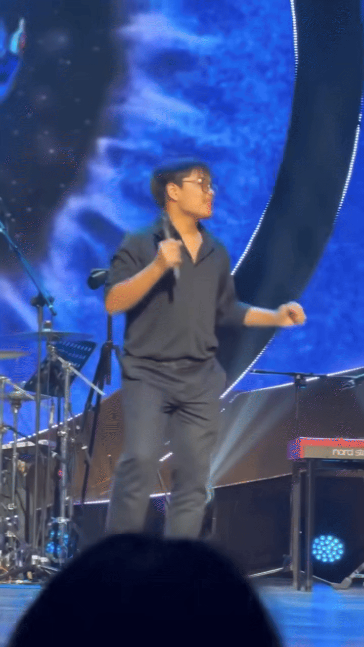 Sự tự tin và nguồn năng lượng trẻ trung giúp Bi Béo trở thành tâm điểm chú ý. Cậu còn tạo nên tranh luận nhờ bộ outfit cả cây đen, sơ mi đóng thùng với quần âu. Netizen nói vui rằng Bi Béo mới học lớp 11 mà tưởng như ông chú hát đám cưới, hay ngỡ như ông bạn hàng xóm của Cục Trưởng Xuân Bắc. Chỉ qua đoạn video dài vài phút, Bi Béo đã cho thấy gen “hài quốc dân” đã được bố Xuân Bắc truyền lại sang người con trai.