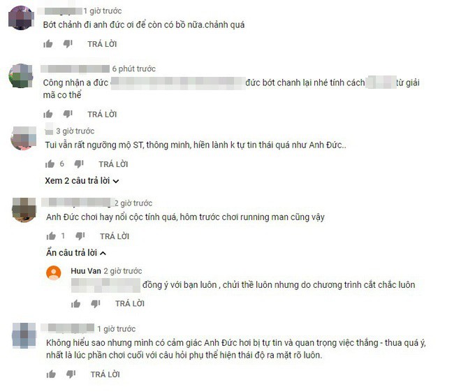 Một số khác còn so sánh với chương trình Running man (Chạy đi chờ chi tuần trước để chỉ ra Anh Đức rất cộc tính, dễ nổi nóng).