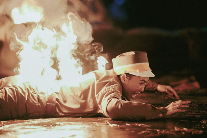 Đạo diễn Nhất Trung cho biết trước khi bấm máy, đoàn phim tập cảnh cháy nhiều lần với đội cascadeur để các diễn viên theo dõi, hiểu mức độ nguy hiểm khi ghi hình. Diệu Nhi được mặc bộ quần áo bảo hộ, có lớp chống nóng phía trong, bôi lên da nhiều lớp kem chuyên dụng để tránh bị bỏng, song sau khi hoàn thành phân đoạn, cô bị một vết bỏng ở chân vì lửa cháy to hơn dự kiến.
