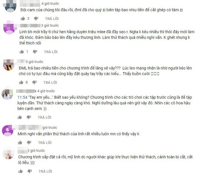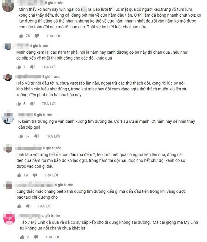 Cụ thể, khán giả đã cho rằng lúc leo dây lưới trên cao, có một người đàn ông đã tới gần Mỹ Linh để kéo cô lên, trong khi các đội khác phải tự lực.