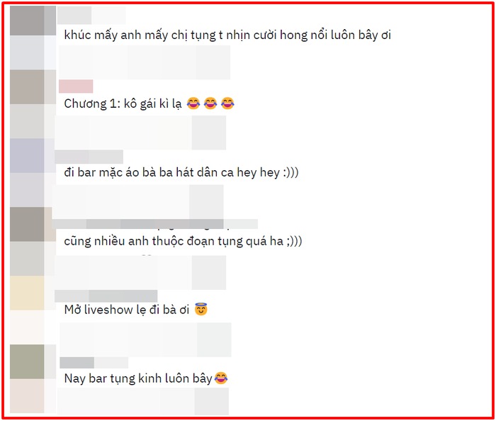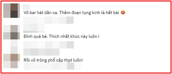 "Đúng chất vào bar mặc áo bà ba hát dân ca luôn chị ơi", "Có một mình chị là vào quán bar rồi hát dân ca đó đã thế còn mặc đồ bà ba nữa chứ", "Màu tím trông trưởng thành hẳn", "Chắc là nữ ca sĩ đầu tiên của Việt Nam mặc đồ bà ba vào bar", "Phương Mỹ Chi thực sự đã lớn rồi, trưởng thành rồi nên tệp khán giả của em phải mở rộng ra', " Lần đầu tiên thấy diễn bar mà... hát hay, cuốn đến vậy luôn á!", " Ai nói gì chứ thấy dễ thương và cũng hợp với bé Chi mà!"... là những bình luận của dân mạng.