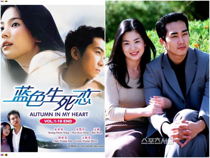Đây là bộ phim truyền hình kinh điển khi nhắc đến mùa thu. Với rating trung bình 38.6% và cao nhất 46.1%, phim đã thành công lan tỏa làn sóng văn hóa Hàn Quốc (Hallyu) đến các quốc gia châu Á. Bộ phim kể về một chuyện tình đầy nước mắt của hai anh em Yun Joon Suh (Song Seung Hun) và Eun Suh (Song Hye Kyo). Váy dài và áo len cổ cao thường xuyên được nữ diễn viên ưu ái đã trở thành xu hướng hoàn hảo cho tiết trời mùa thu. Các cảnh quay lãng mạn đậm chất mùa thu đã biến những thước phim của Autumn in My Heart trở nên giàu cảm xúc hơn bao giờ hết.