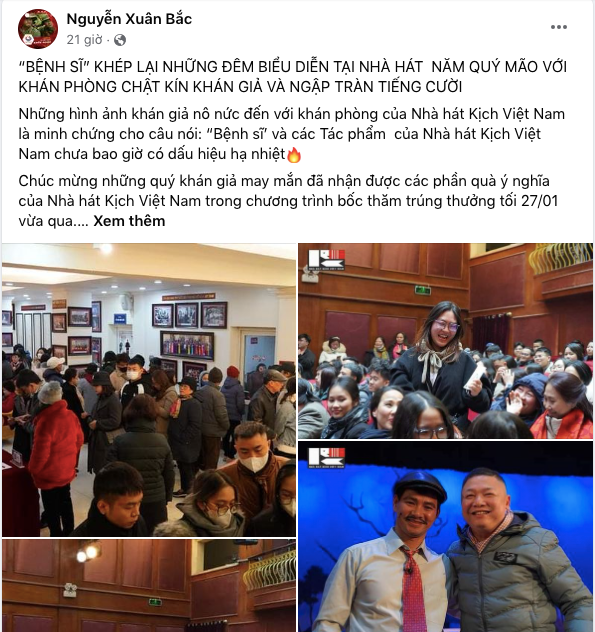 Status nam nghệ sĩ nói về vở diễn đêm 27/1 của Nhà hát Kịch Việt Nam - nơi anh đảm nhận vị trí giám đốc đã thu hút rất đông khán giả đã đến xem. Kèm theo status là nhiều hình ảnh Xuân Bắc tại đêm diễn. Điều này chứng tỏ vào tối 27/1 khi Táo Quân ghi hình ngày đầu, Xuân Bắc lại đang bận rộn với công việc ở Nhà hát Kịch Việt Nam. Nam nghệ sĩ không hể nhắc bất cứ điều gì đến chương trình Táo Quân 2024 dù vẫn đang ghi hình.