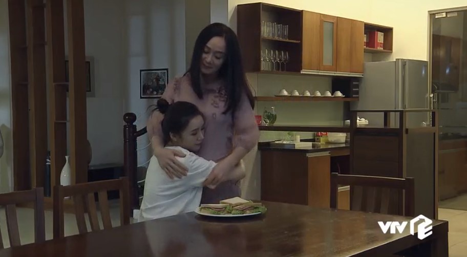 Ngân làm lành với con gái. Chính tay cô làm món ăn tối cho con.