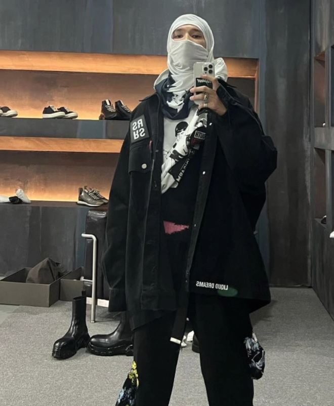 Trước đây, MCK từng được khán giả biết tới với những outfit "chiến đét" đầy trẻ trung và màu sắc. Nhưng có lẽ, sau một thời gian tâm trí (có vẻ) rất suy, MCK dần muốn cất bản thể chóe lọe trước kia đi để luyến láy vẻ ngoài bằng thứ gì đó trầm mặc hơn, gai góc hơn. Và thế là "cá mập" xì tin tạm rời nhà chung để MCK phiên bản dark wear pha chút avant-garde hiên ngang debut.